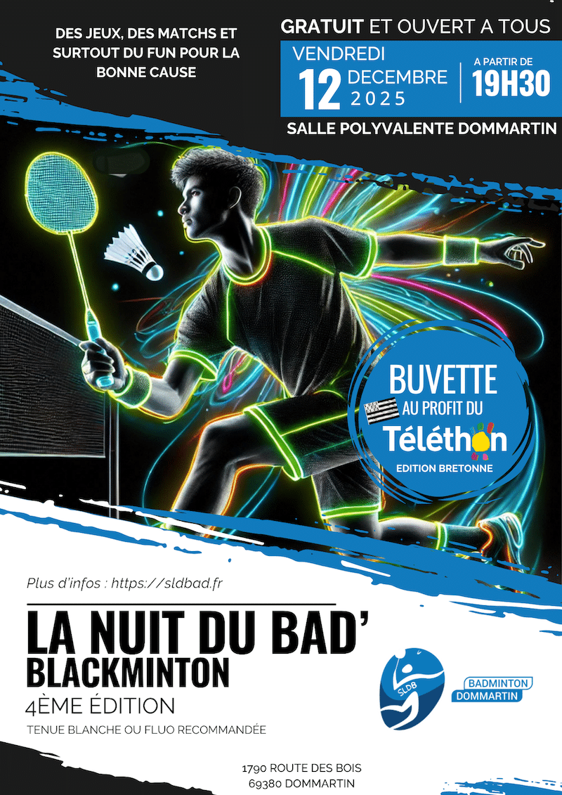 Pour la 4ème année, nous renouvelons notre nuit du bad au profit du Téléthon !